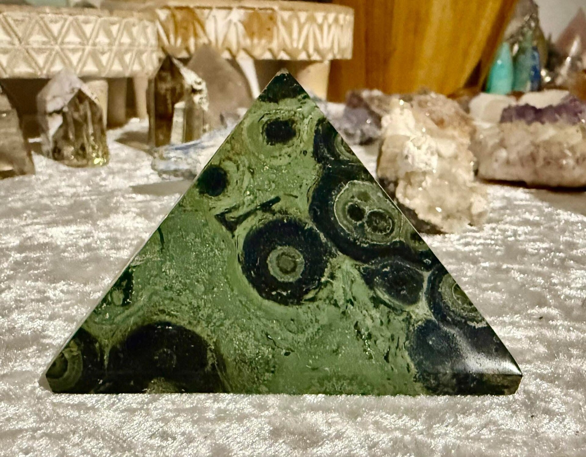 Kambaba Jasper is a stone associated with ancient wisdom, peace, and a deep connection to the Earth. Its meanings include promoting calmness, balance, and emotional healing, while its unique patterns are said to represent the origins of life on our planet. It is also linked to nurturing and compassion, making it a supportive stone for difficult times.