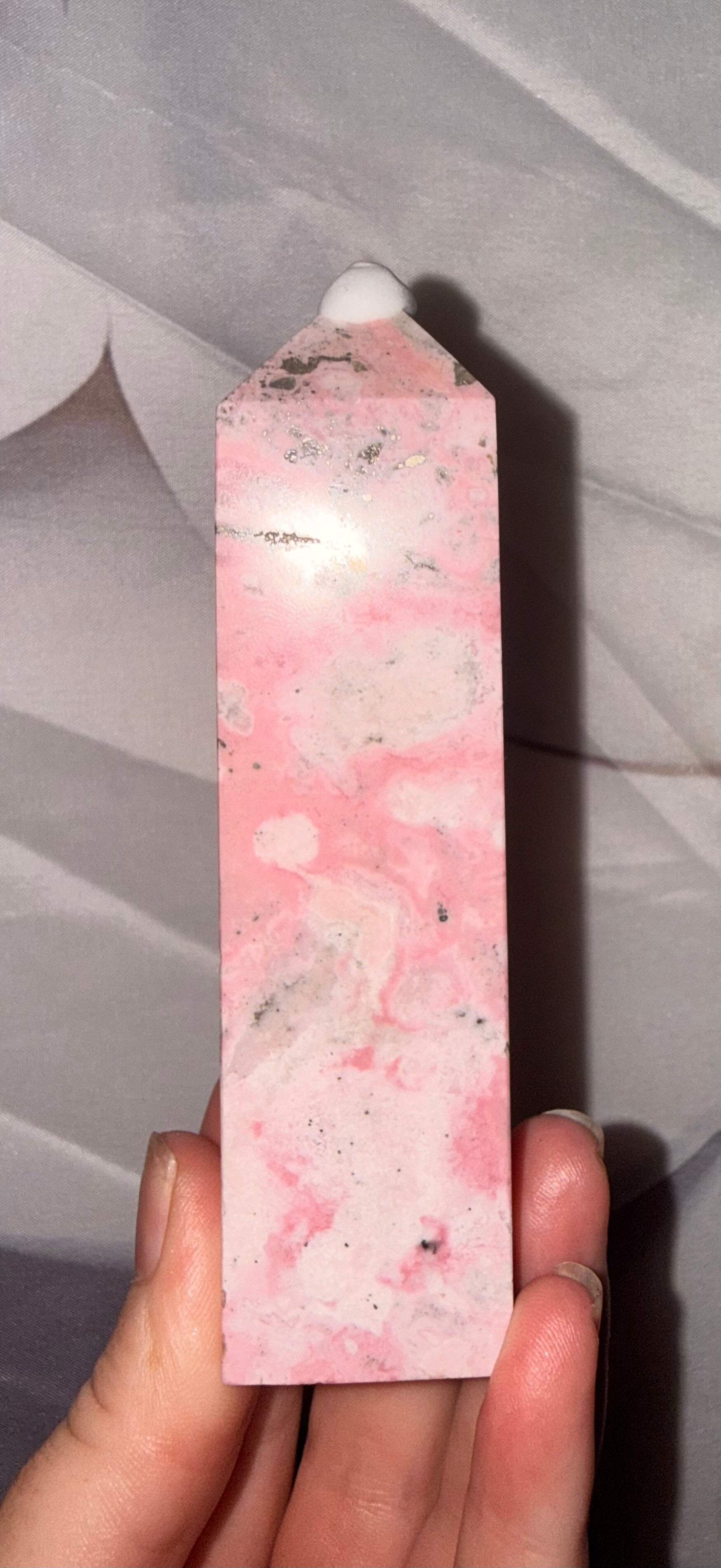 Peruvian Rhodonite is a rare, high-vibration stone of love, compassion, and profound emotional healing, often featuring pink hues with black inclusions. It promotes forgiveness, reduces anxiety, helps release self-destructive tendencies, and balances the heart chakra to encourage nurturing energy and self-love.