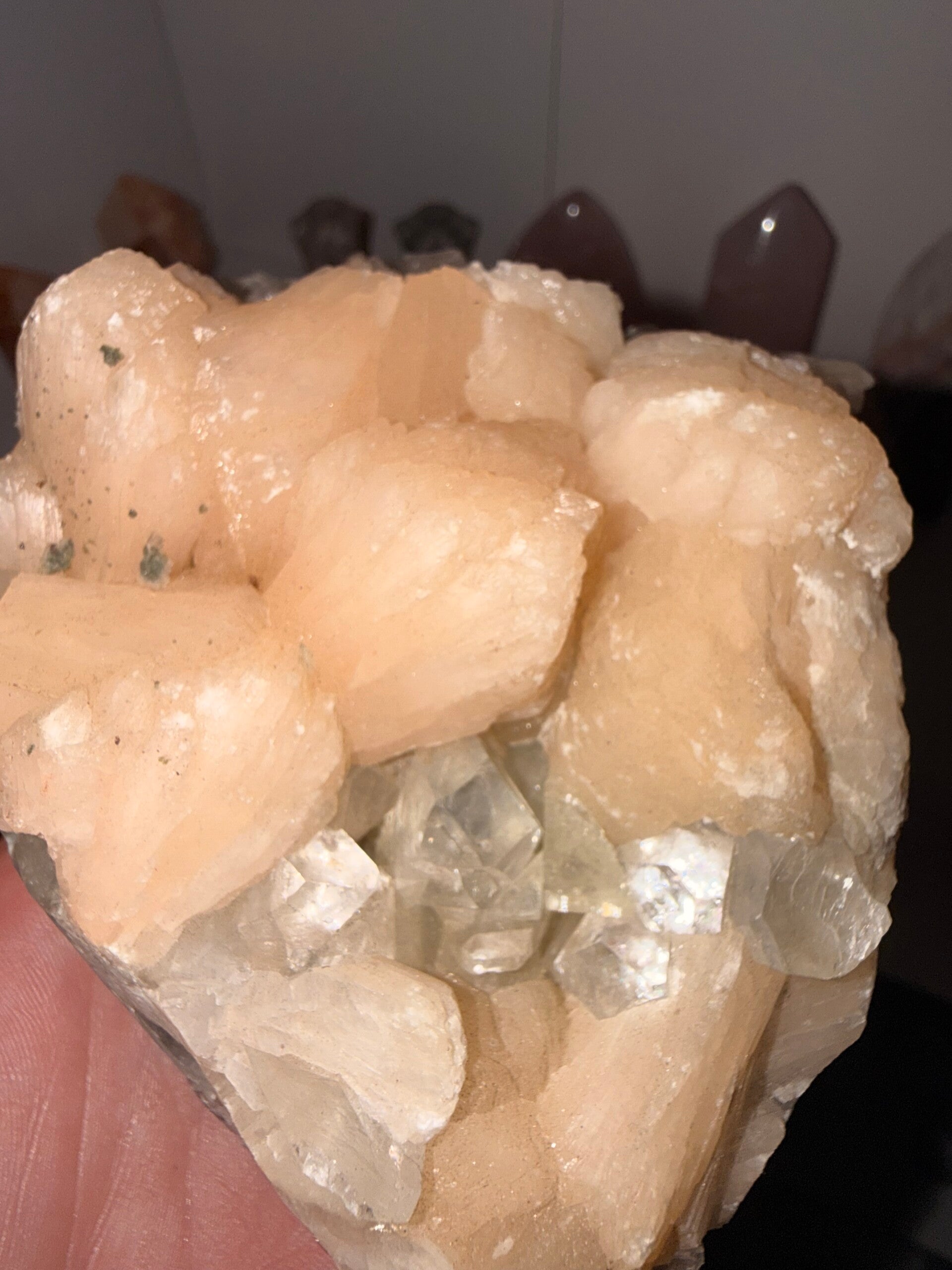 Combining apophyllite with stilbite is extremely powerful in addressing ailments of the heart, throat, lungs, and skin. It also helps ease feelings of grief, boost clarity of thoughts, and soothe frayed emotions.