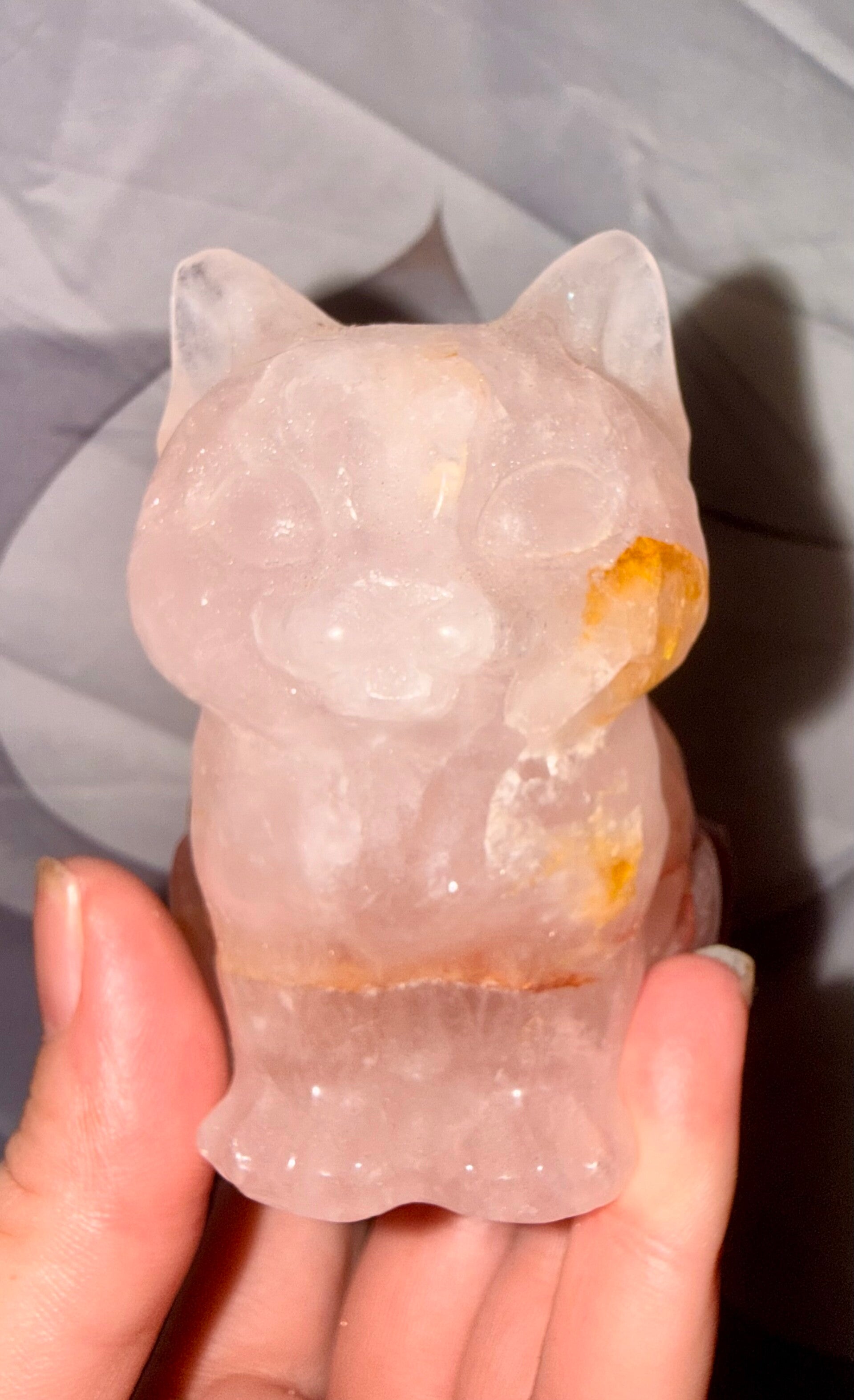 Rose and golden healer Cat carving