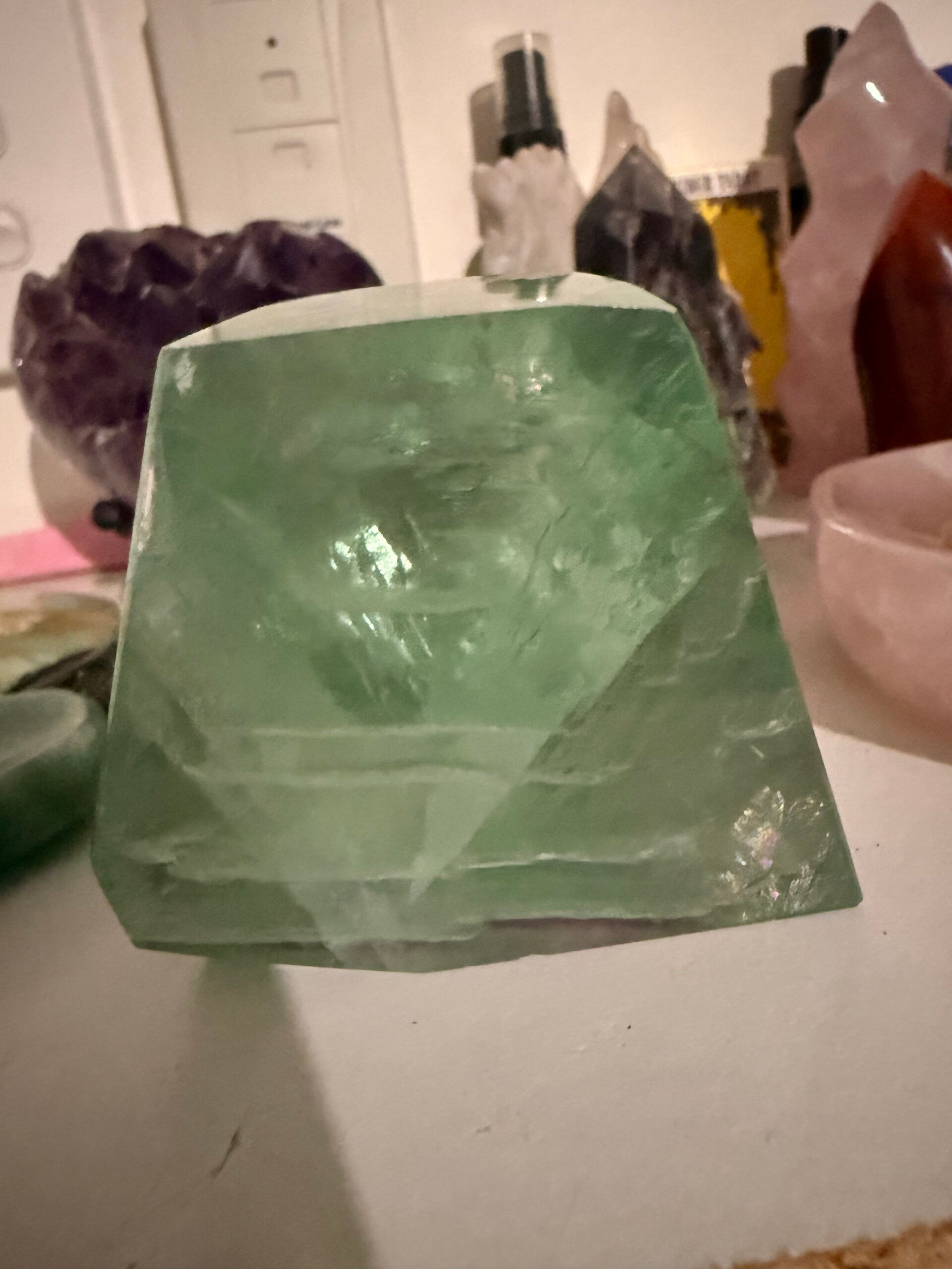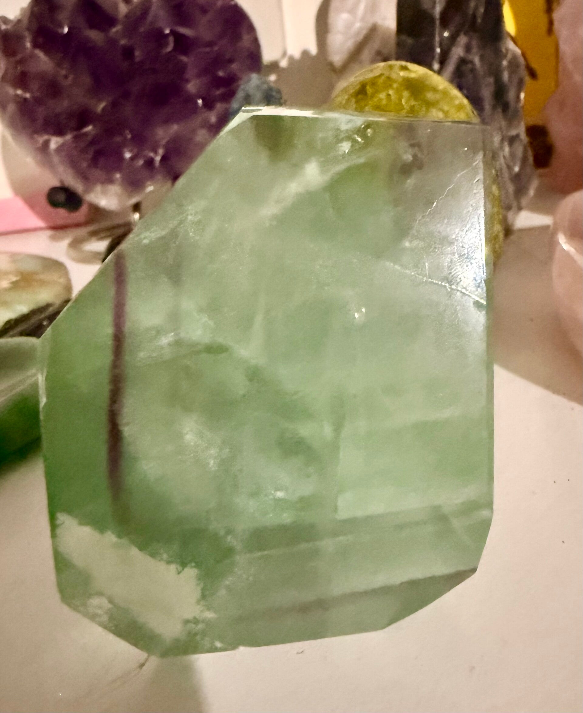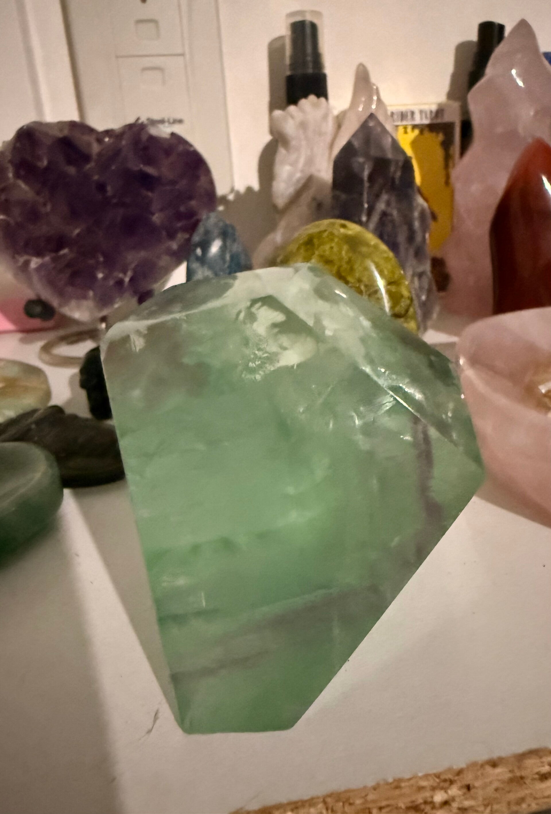 Fluorite, often called the "Genius Stone" or "Rainbow Gemstone," is a highly protective and balancing mineral known for boosting mental clarity, focus, and emotional harmony. It is used in meditation to clear energy, for Chakra alignment, and for organization