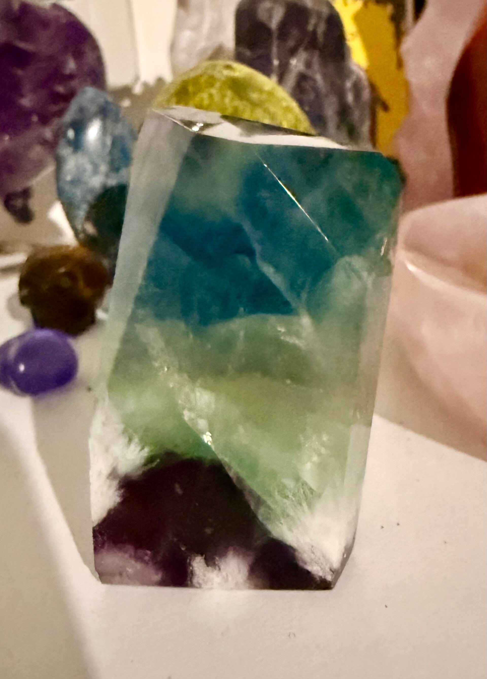 Fluorite, often called the "Genius Stone" or "Rainbow Gemstone," is a highly protective and balancing mineral known for boosting mental clarity, focus, and emotional harmony. It is used in meditation to clear energy, for Chakra alignment, and for organization