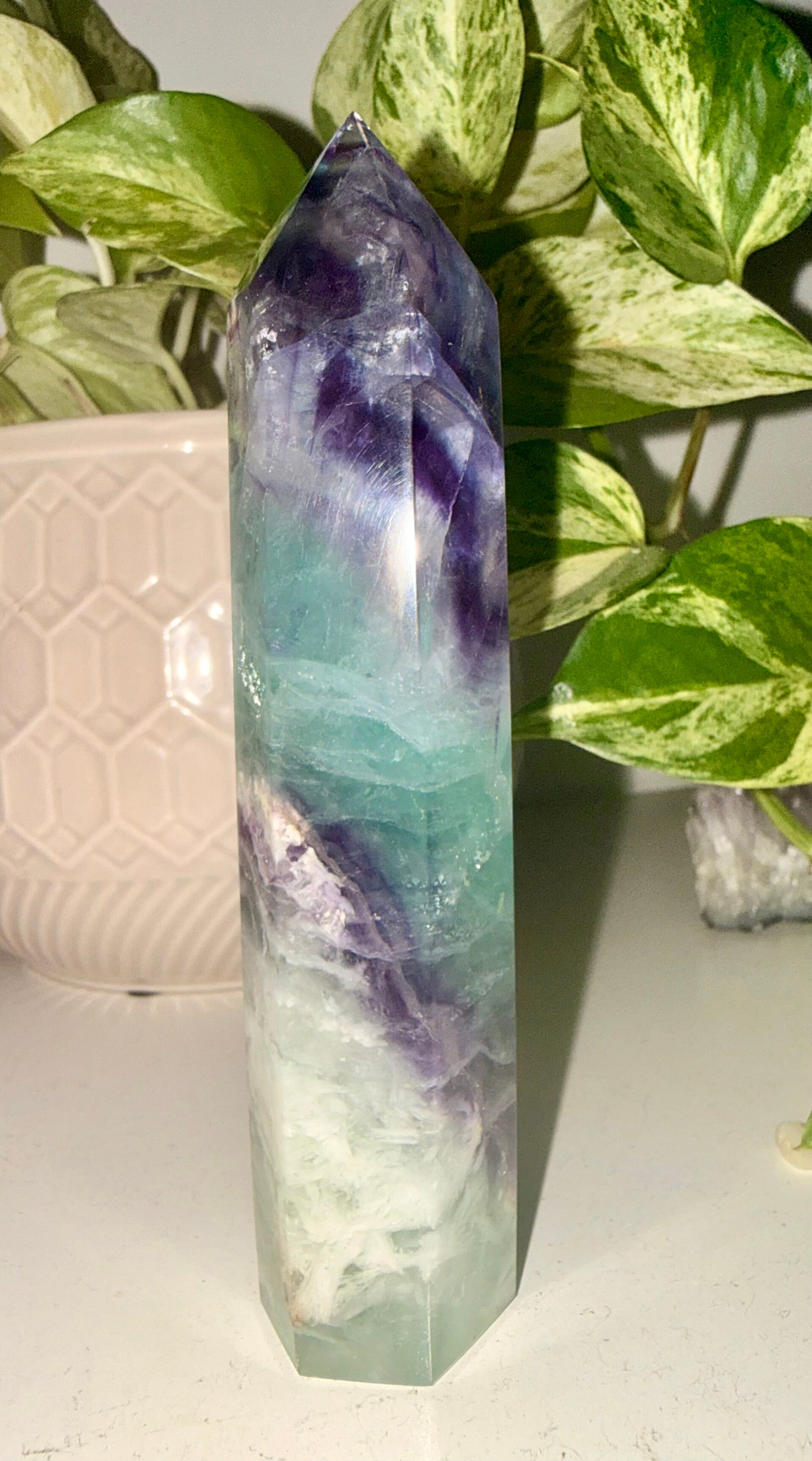 Fluorite, often called the "Stone of Genius" or "Psychic Vacuum Cleaner," is a powerful healing crystal known for bringing mental clarity, focus, and emotional balance. It is primarily used to clear negative energy, enhance concentration, and promote harmony. Fluorite is widely used for meditation, as jewelry to keep its energy nearby, and in workspaces for productivity.