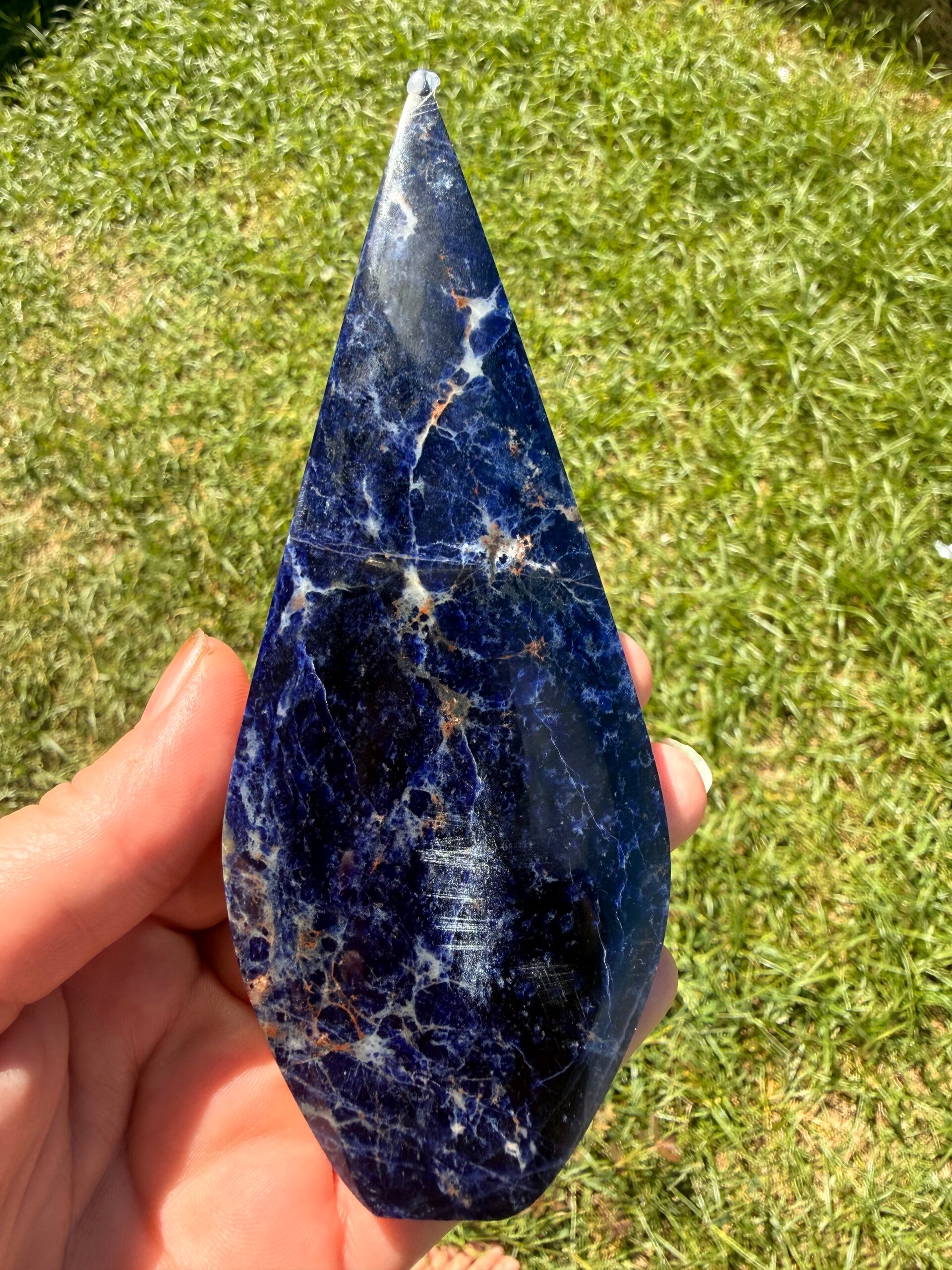 Sodalite is a deep-blue tectosilicate mineral known as a stone of logic, truth, and inner peace, often used to bridge the gap between thoughts and feelings. It promotes mental clarity, emotional balance, and intuitive insights while aiding in the calming of panic attacks and encouraging rational thought.